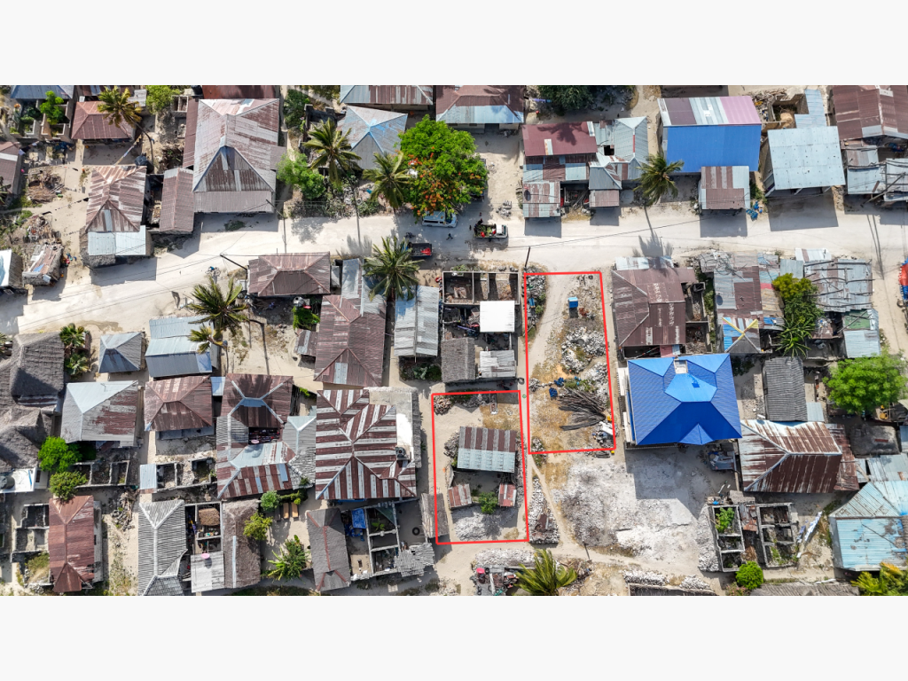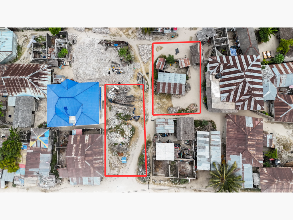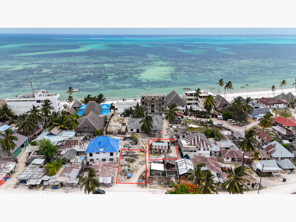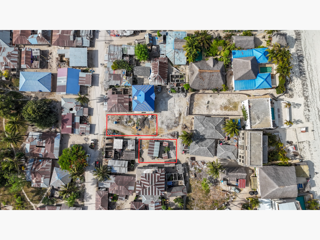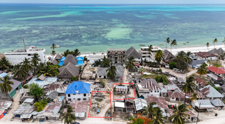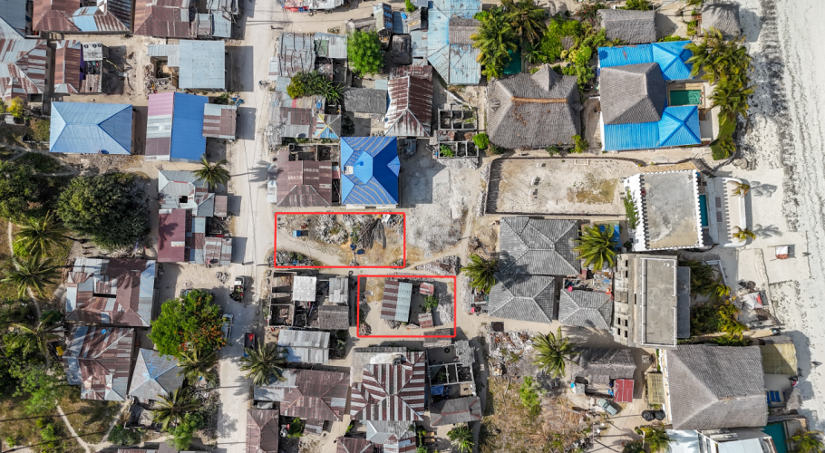 Two well-located plots in the heart of Jambiani village are available together for $120,000, totaling 435 sqm. The 180 sqm plot includes a small local house, while the 255 sqm plot is vacant and ready for development.