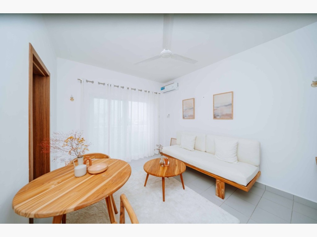Experience the perfect blend of modern comfort and island charm with this fully furnished, designer 2-bedroom apartment in the prestigious Fumba Town Development, Zanzibar. Spanning 50.1 sqm, this thoughtfully designed home offers an inviting open-plan layout, featuring two spacious bedrooms, a sleek modern bathroom, and a fully equipped kitchen with brand-new appliances. The bright and airy living area creates a warm and relaxing ambiance, complemented by breathtaking ocean views and direct access to the beach. Essential amenities, including air conditioning and ceiling fans, ensure year-round comfort.