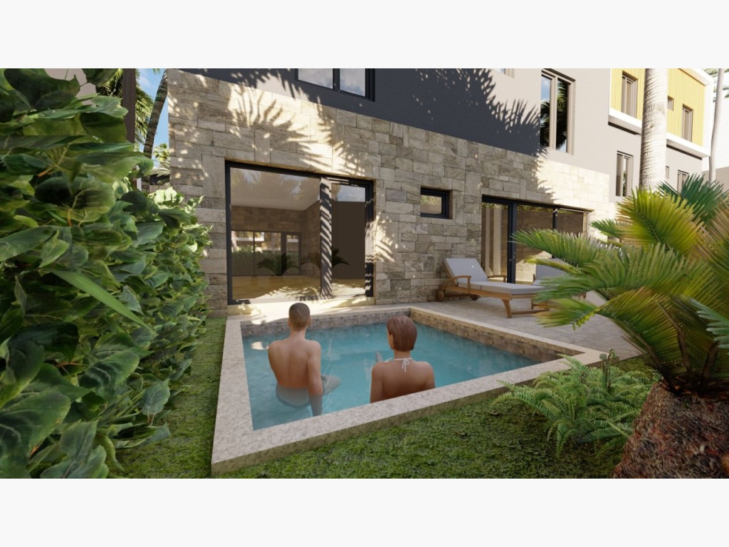 - Private outdoor terrace and pool (ground-floor units only): 41.93 m² – 56.51 m²
