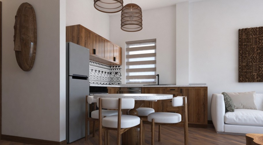 Anga is a luxury 2-bedroom apartment within the Vela Paje Zanzibar development in Paje. Spread across the ground, first, and second floors, Anga offers versatile living options designed for families or groups. Select ground-floor units feature a private garden and swimming pool, creating an exclusive blend of contemporary elegance and Zanzibar’s natural charm. Located near the main road and approximately 300 meters from Paje Beach, Anga combines strong rental demand with exceptional lifestyle and investment potential in one of Zanzibar’s most sought-after destinations.